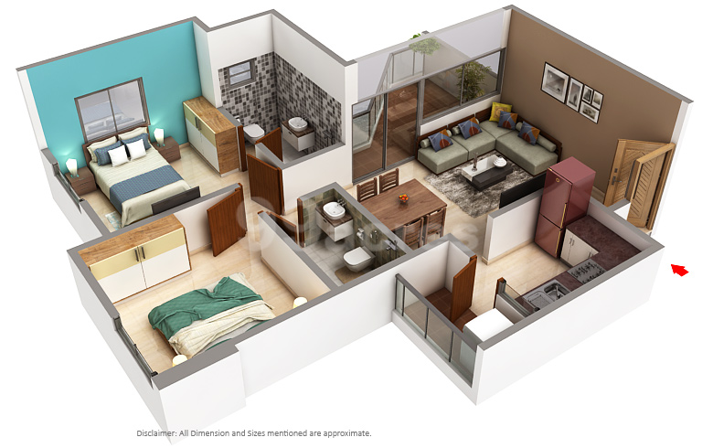 2 BHK Apartment 945 sq.ft. (87.79 sq.m.)